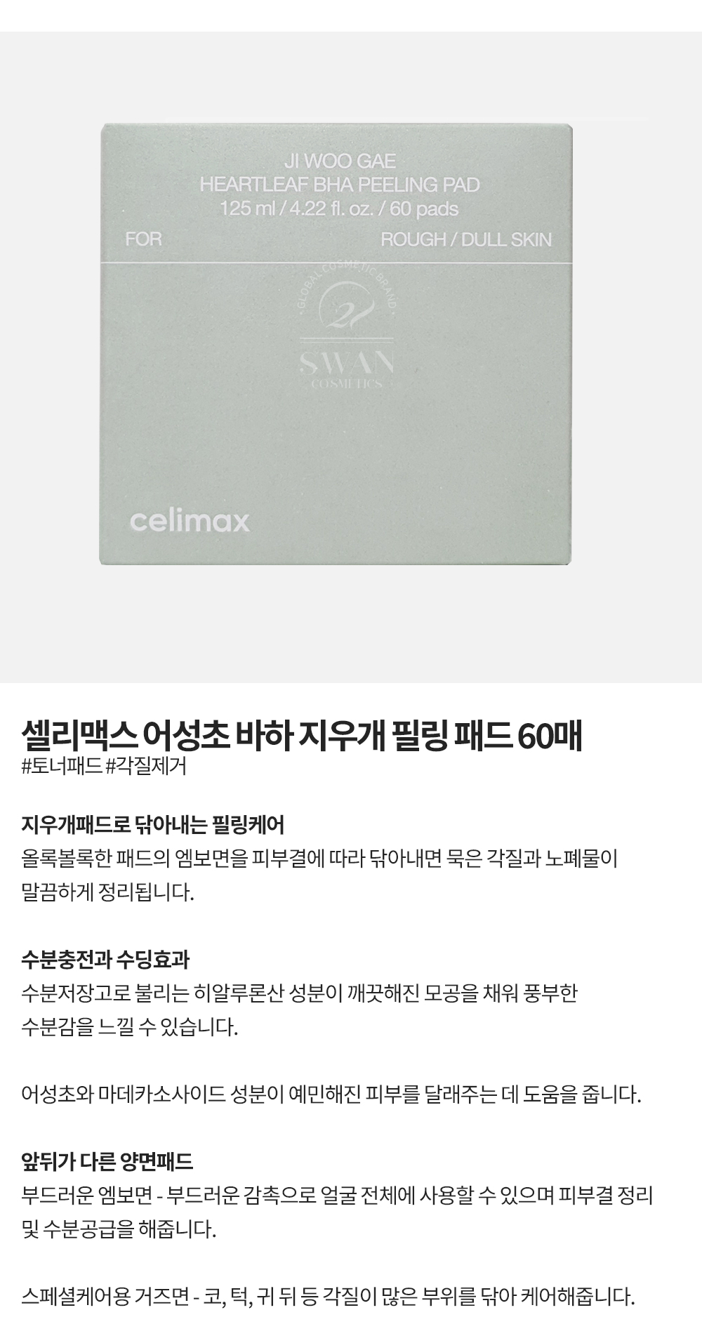 | 사용방법 | 1. 엠보면으로 얼굴 전체를 부드럽게 닦아 각질, 피지 등 모공 속 노폐물을 제거하세요. 2. 거즈면으로 코 옆, 턱 등 고민 부위를 한 번 더 닦아 묵은 각질을 제거해 주세요. 3. 얼굴에 남아있는 토너를 두드려 흡수시켜 주세요. |