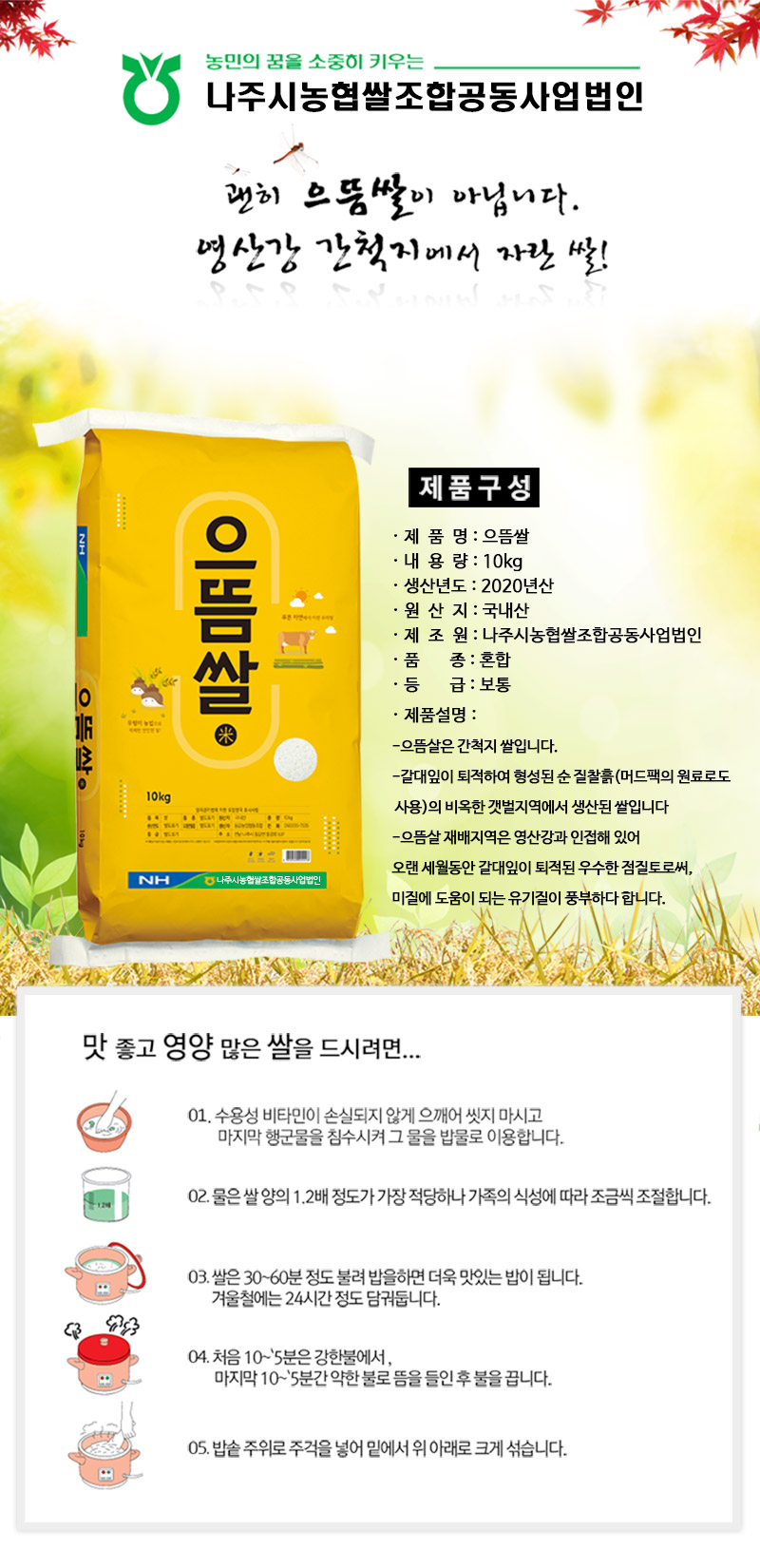 | 품목 또는 명칭 | [나주동강농협] 20년 으뜸쌀 10kg |