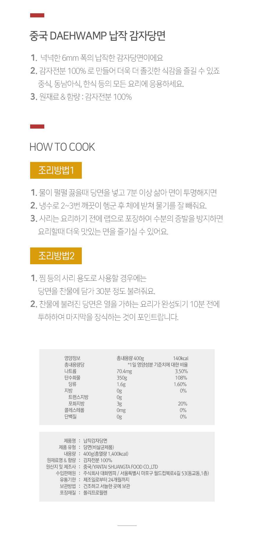 | 원재료 및 함량 | 감자전분 상세정보참조 |