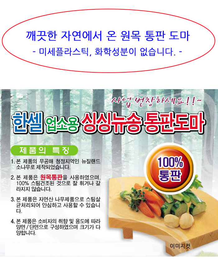 - 한셀 업소용 싱싱도마는 청정 지역인 뉴질랜드 소나무로 제작되었습니다.