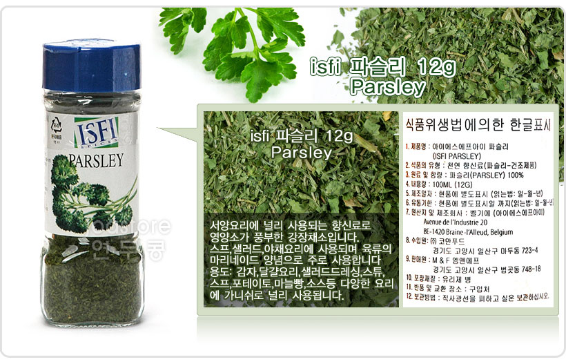| 원재료 및 함량 | 파슬리 100% |