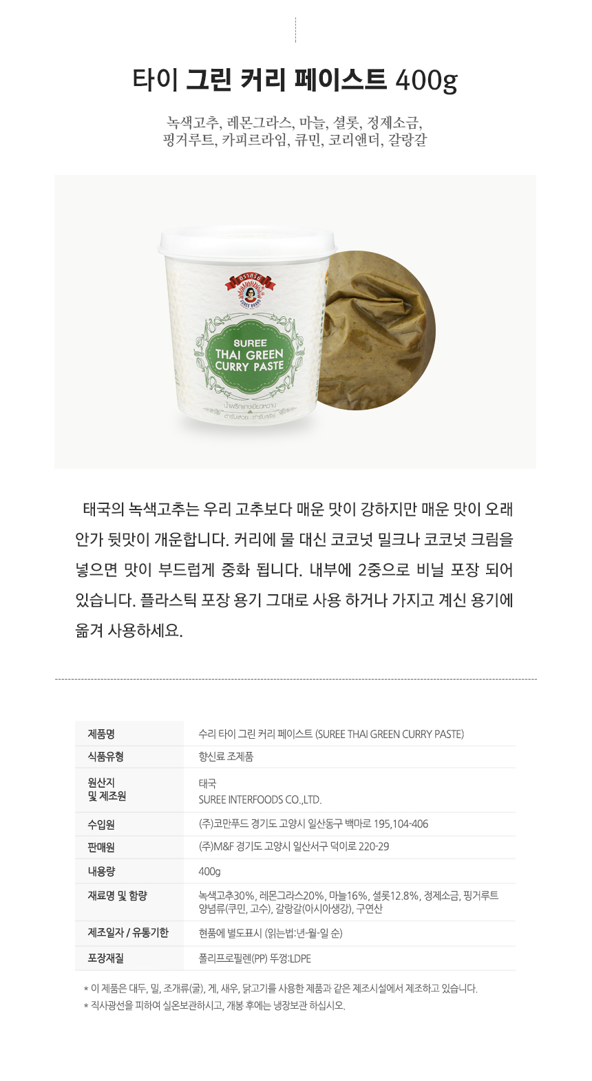| 품명 | 수리 타이 그린 커리 페이스트 400g |