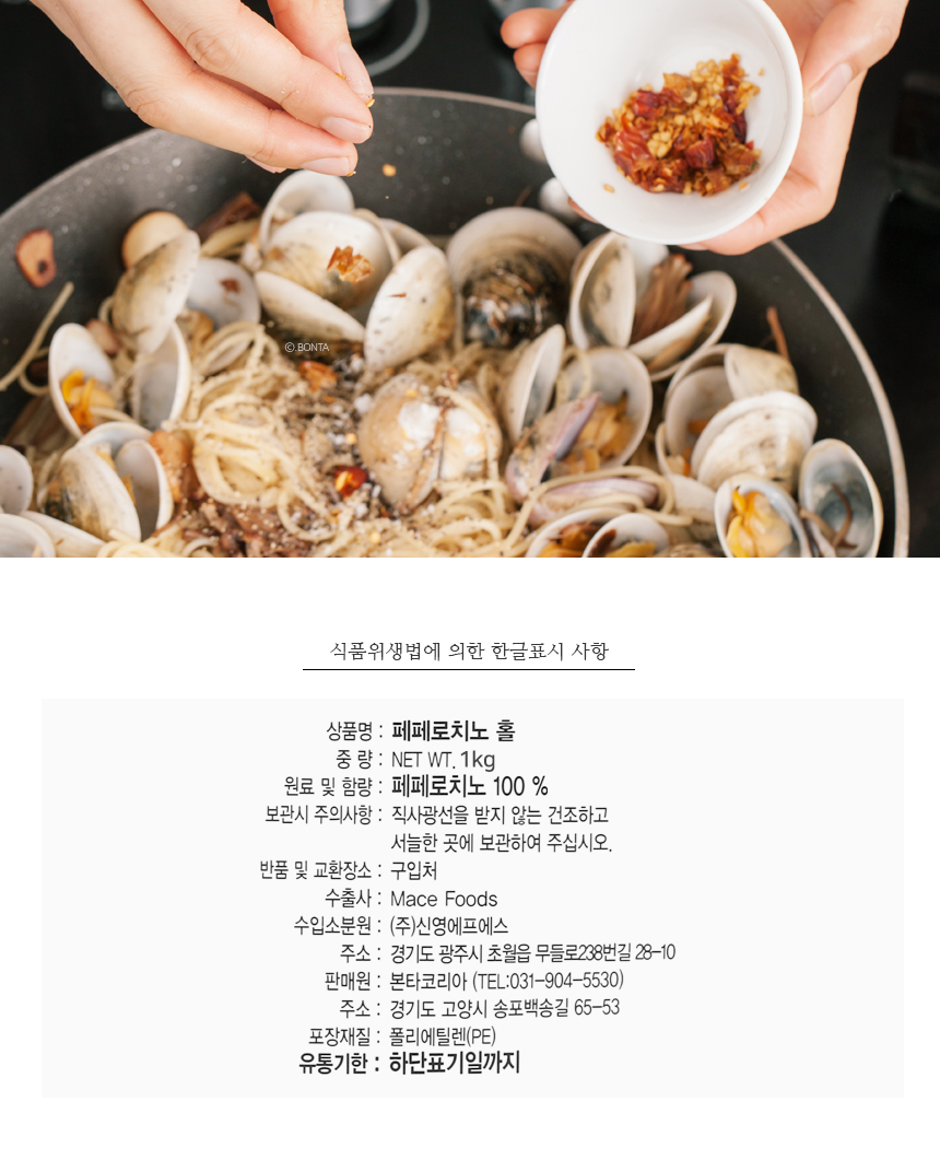 | 원재료 및 함량 | 페페로치노 |