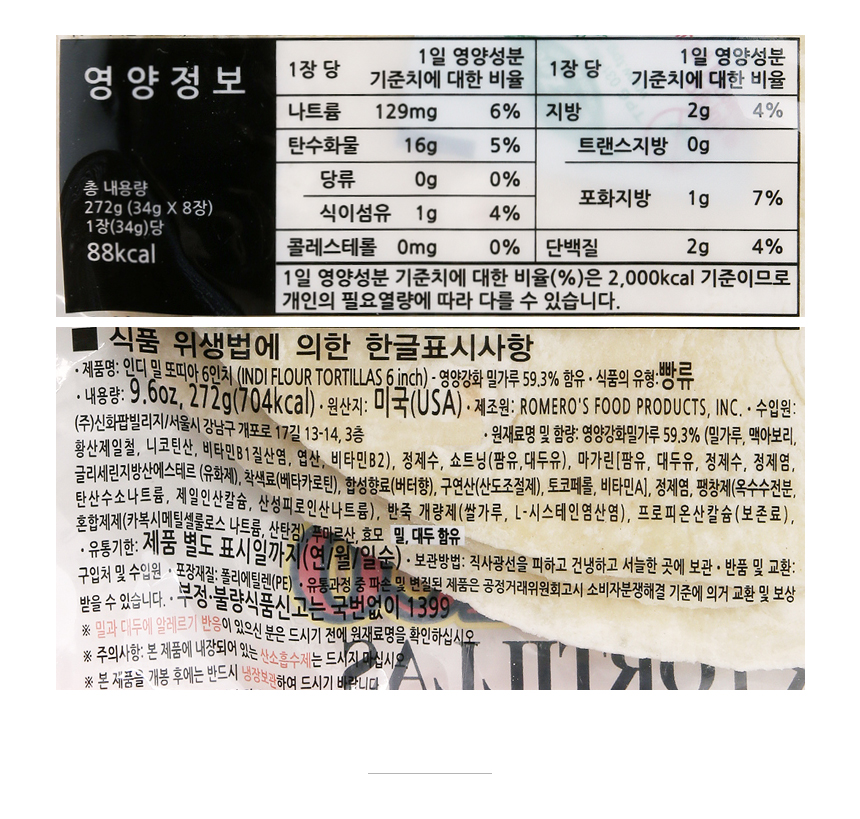 | 품명 | 인디 밀 또띠아 6인치 272g |
