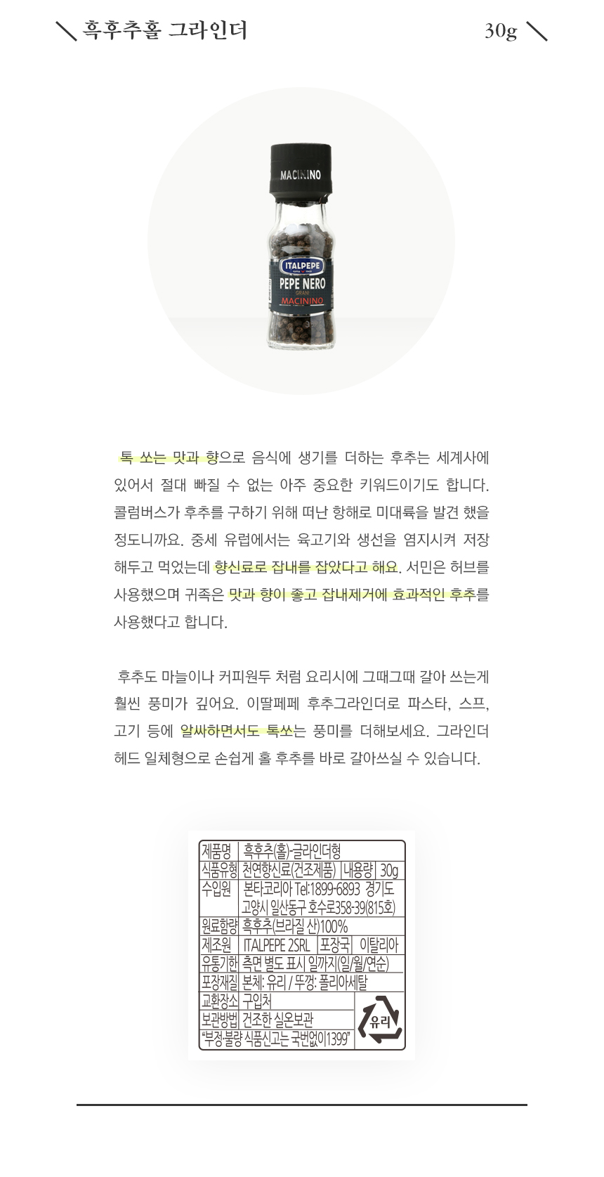 | 품명 | 이딸페페 블랙페퍼 홀 그라인더 30g |