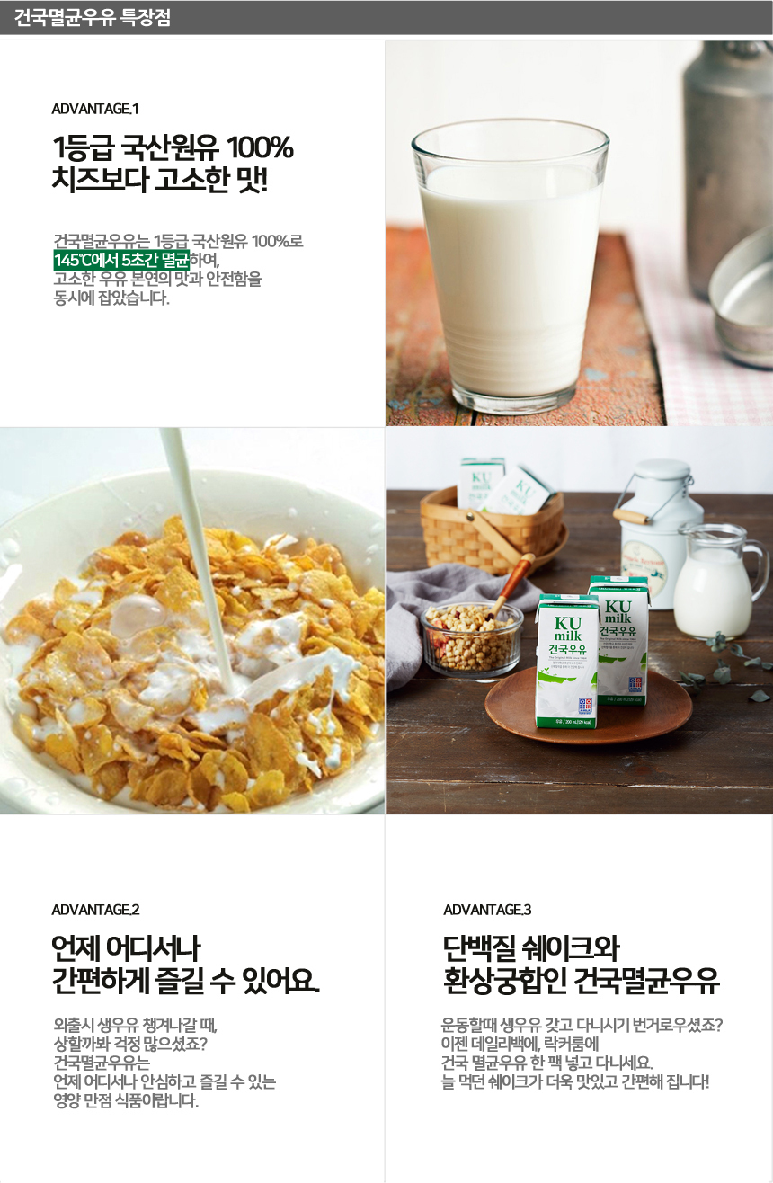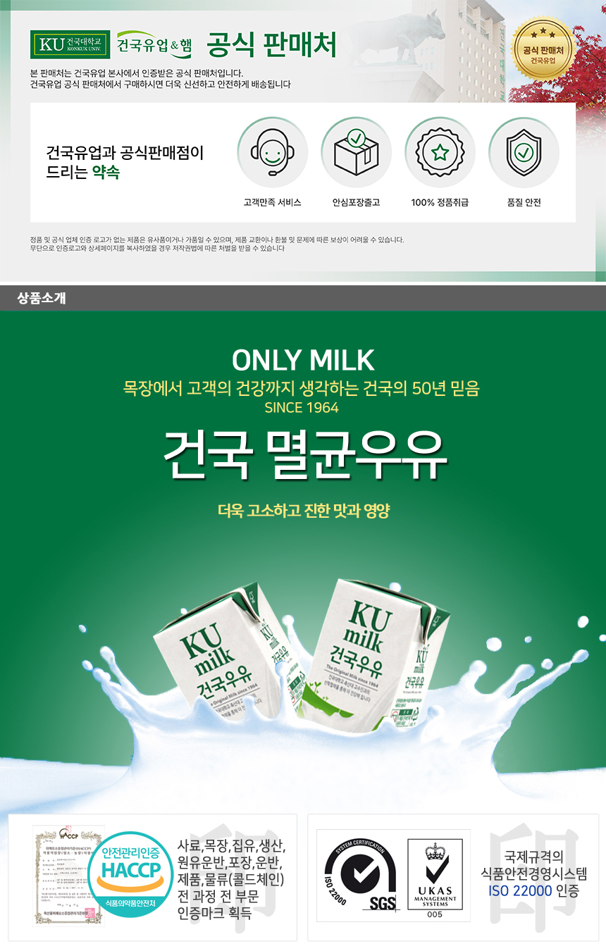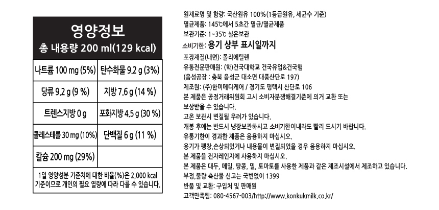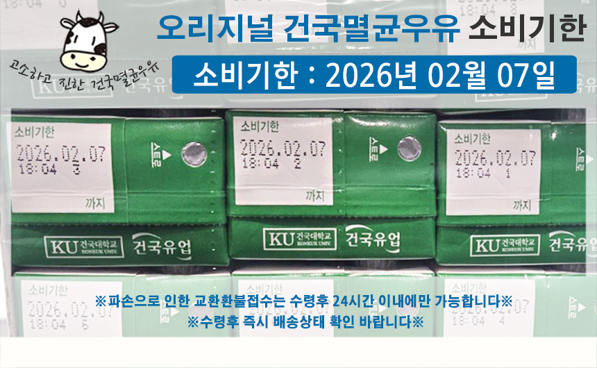 | 포장단위별 내용물의 용량(중량),수량 | 건국멸균우유 200ml 2박스(48팩), 순한목장우유 150ml 2박스(48팩) |