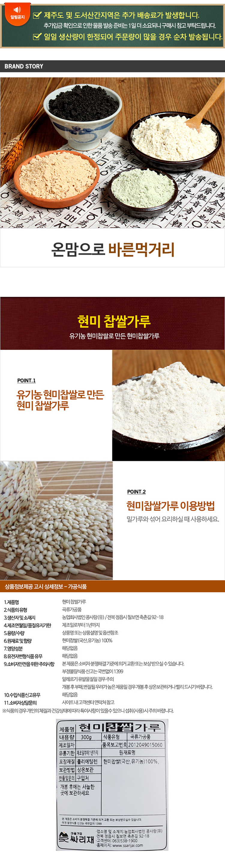 | 포장단위별 내용물의 용량(중량),수량 | 현미 찹쌀가루 300g |