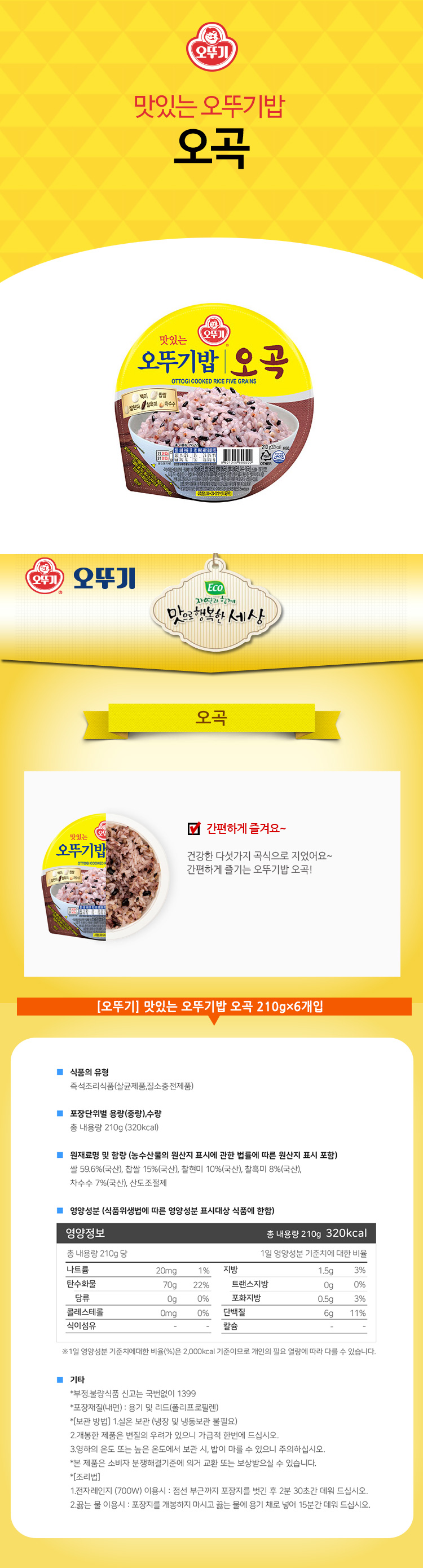 | 품명 | 오뚜기밥 오곡 210g x 6개 + 오뚜기밥 찰현미 210g x 6개 |