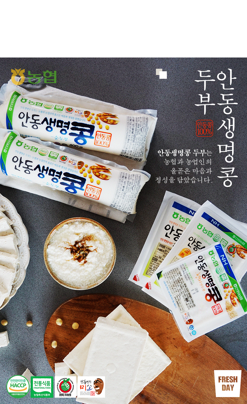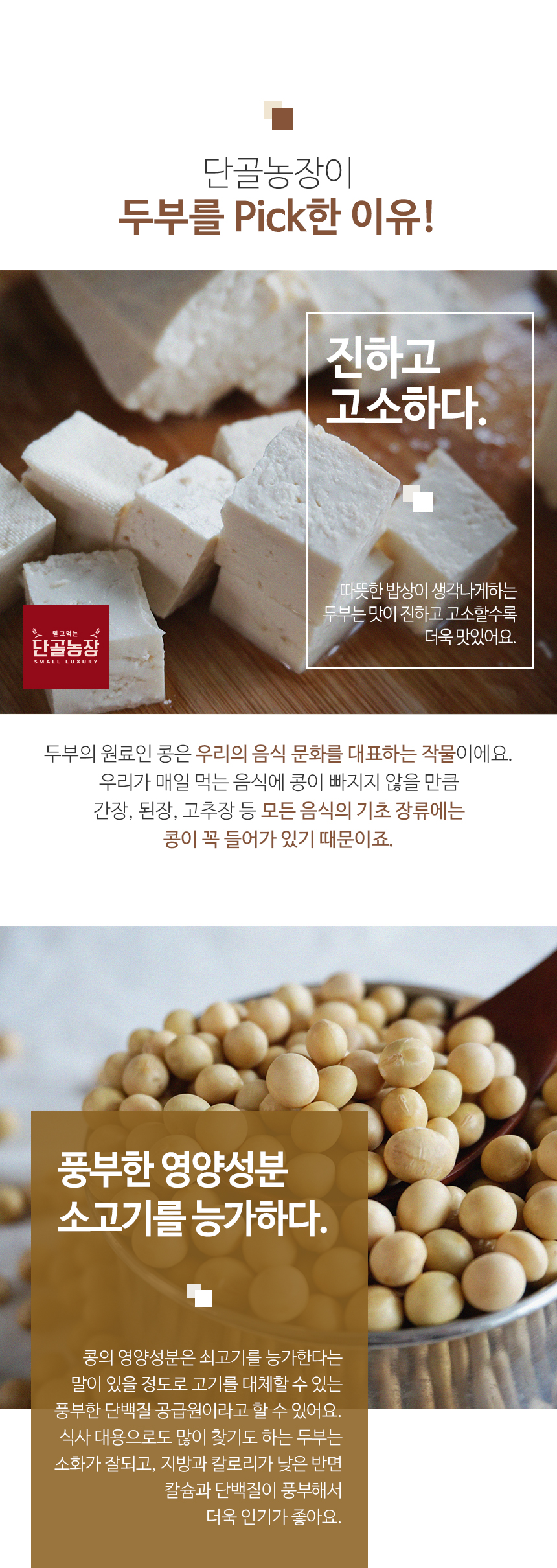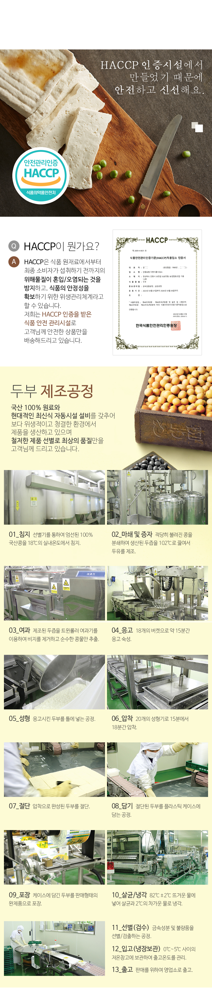 | 원재료 및 함량 | 두부 : 대두100%(국내산), 천연응고제(조제해수염화마그네슘,올리브유,식물성유지) |