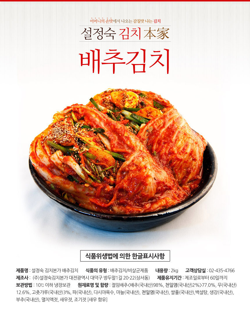 | 식품의 유형 | 대전대덕구 방두말1길 20-22/설정숙김치본가 |