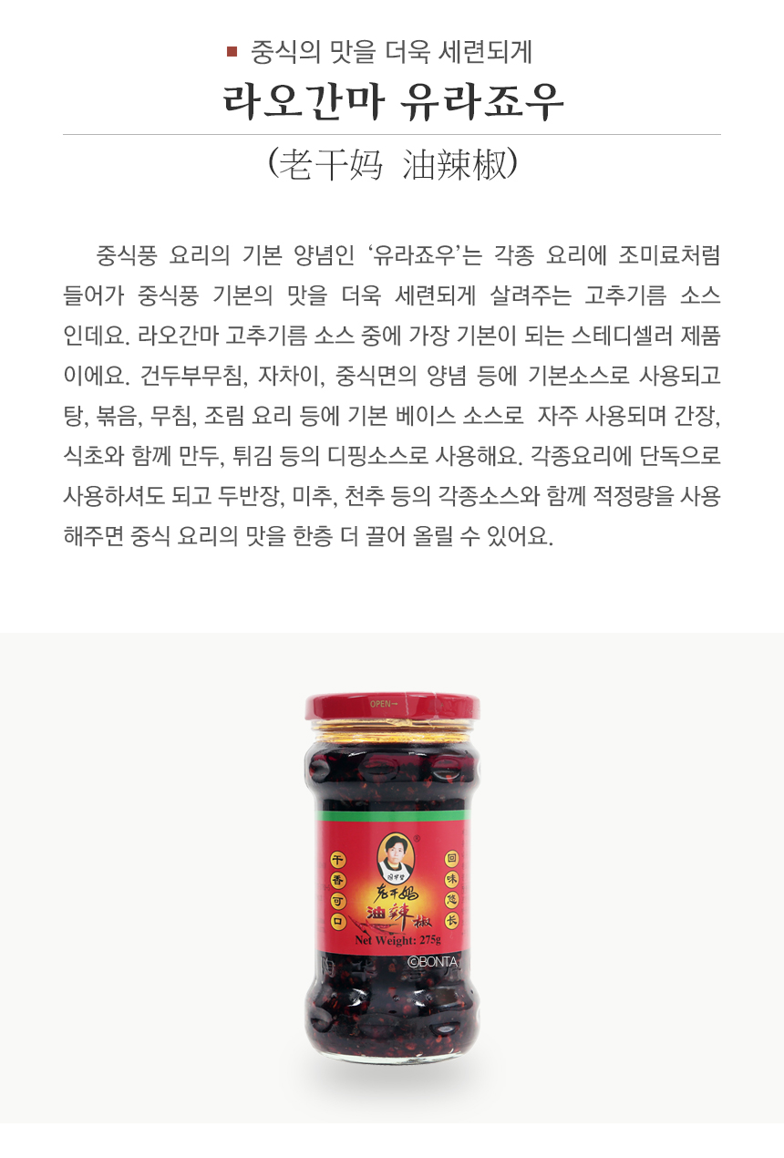 | 생산자 및 소재지/수입자 | GUIYANG NANMING LAOGANMA SPECIAL FLAVOUR FOODSTUFF CO.,LTD / 중국 |