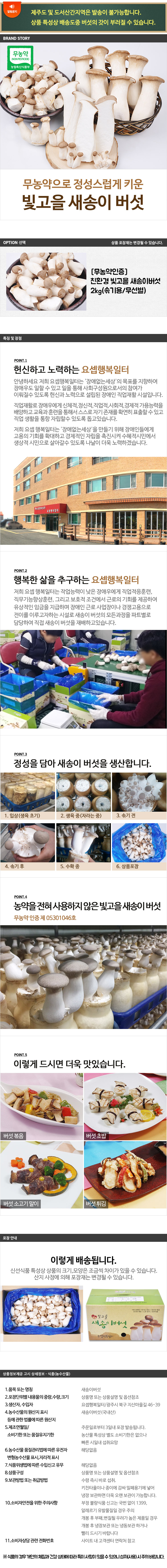 | 품목 또는 명칭 | [무농약인증] 국내산 새송이버섯(볶음용) 2kg(솎기용/무선별) |