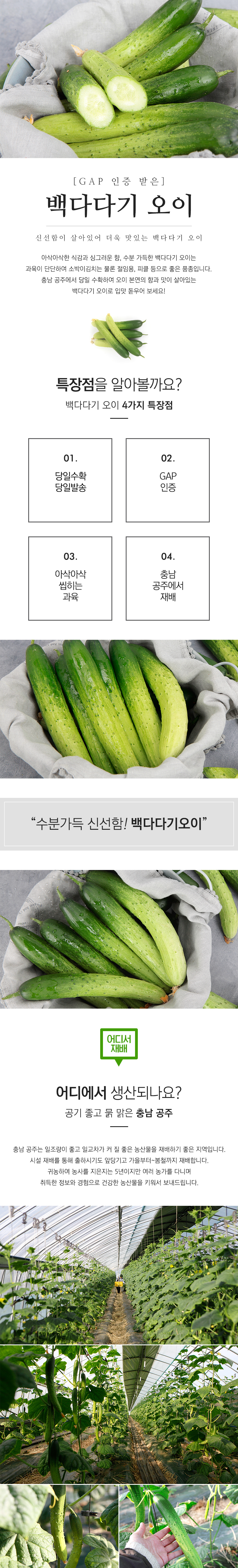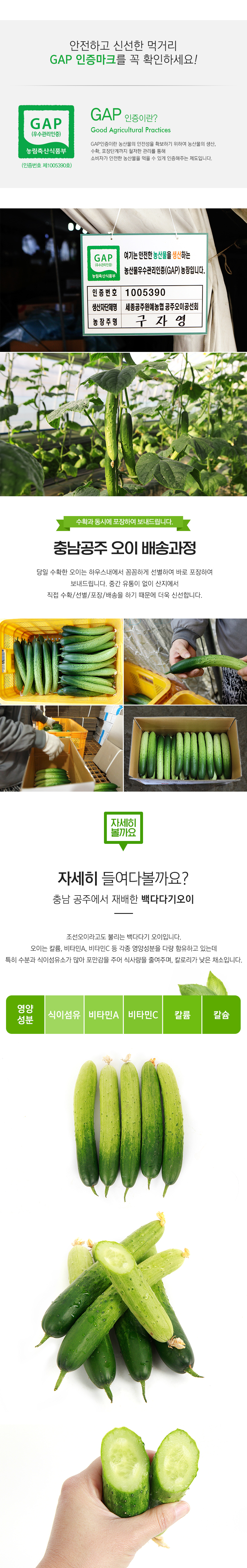 | 품목 또는 명칭 | GAP인증 충남공주 백다다기 오이 상품 2kg 9-10입 |