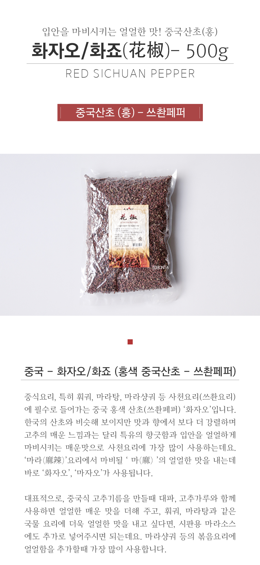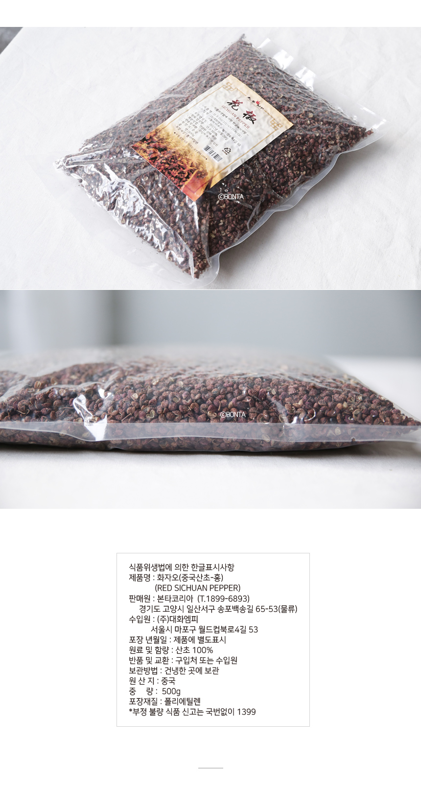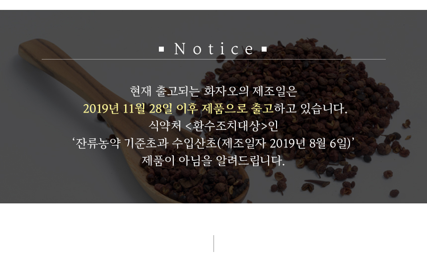 | 원재료 및 함량 | 산초100%(중국) |