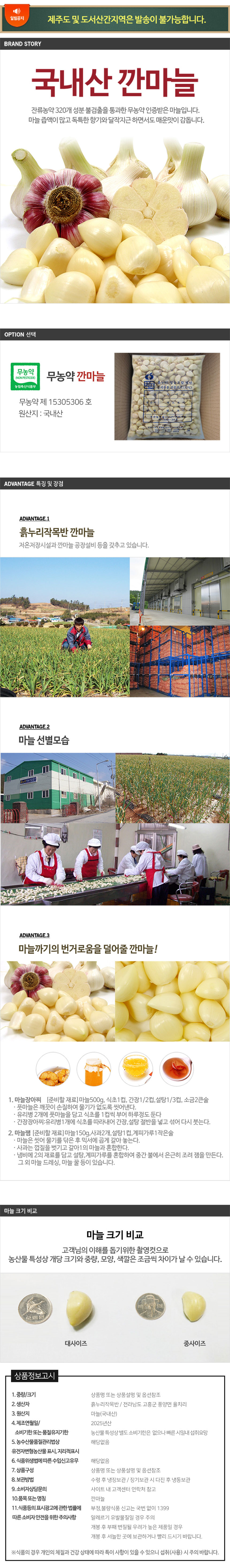 | 품목 또는 명칭 | [산지발송] 20년산 국내산 무농약 깐마늘(대) 3kg |