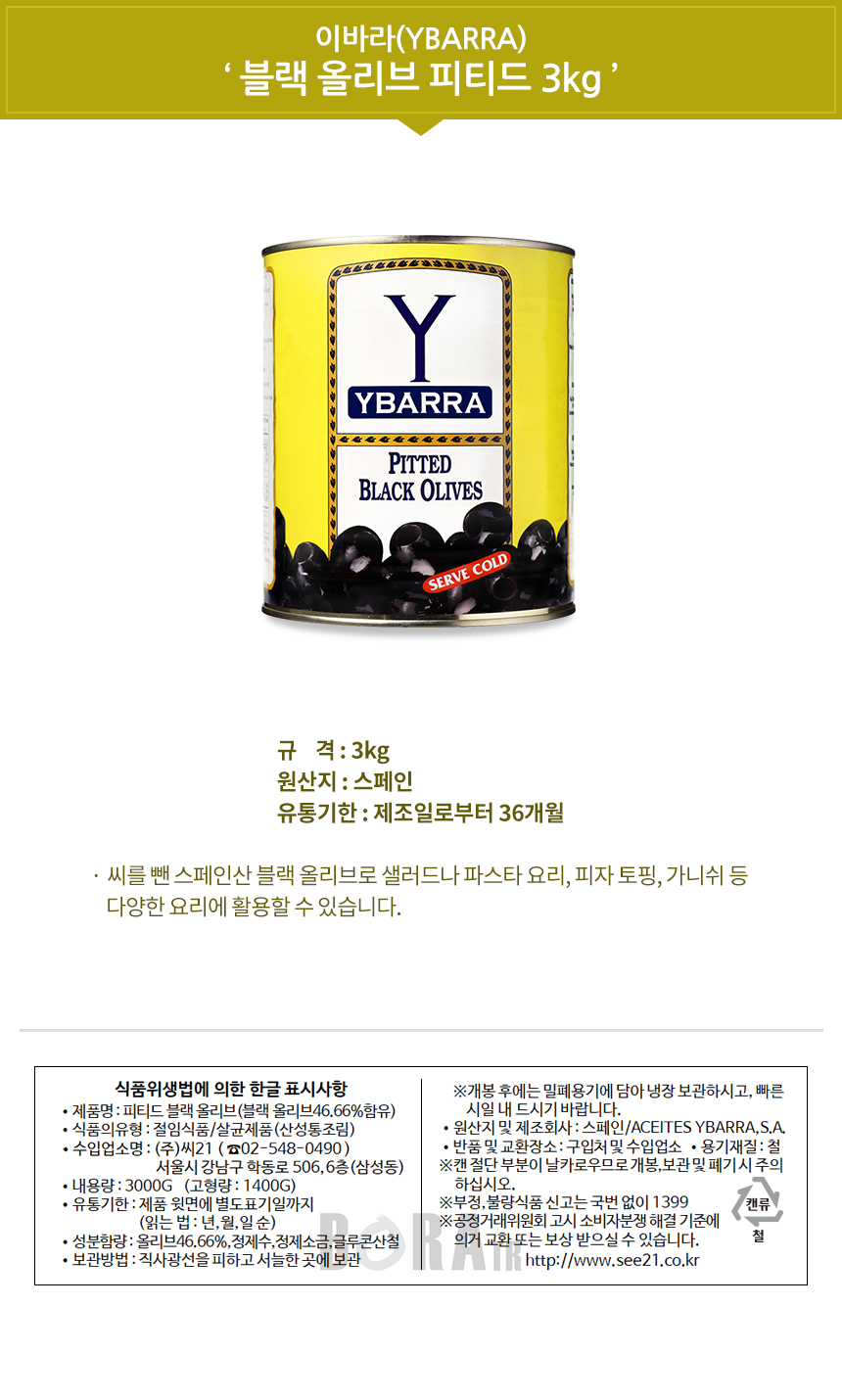▶ 상품명 : [이바라] 피티드 블랙 올리브 3kg ▶ 소비기한 : 2027년 7월 30일