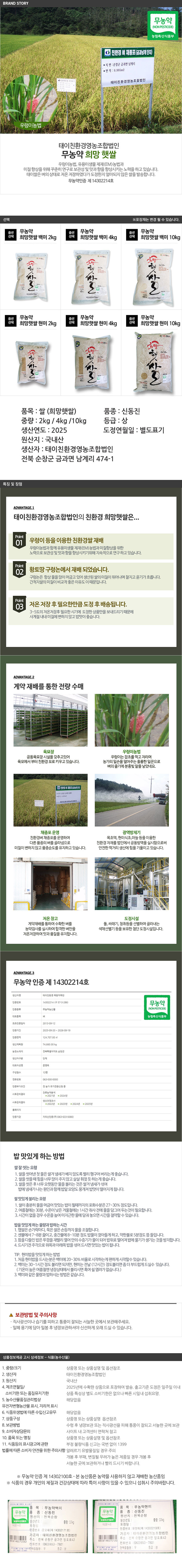 | 품목 또는 명칭 | 무농약 희망쌀 2kg X 3포 |