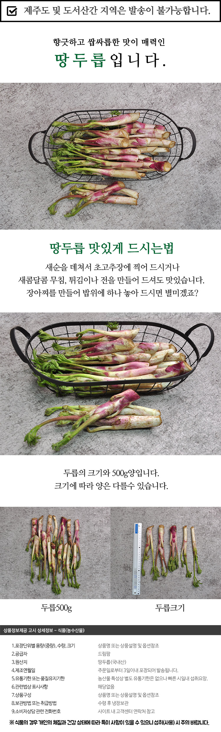 | 품목 또는 명칭 | 향긋한 국내산 땅두릅 1kg 내외 |