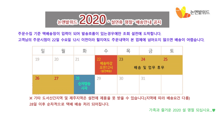 | 휴일(2) | 일반상품 단독 | 오전주문 | 휴무일 | 제품수령 | |||