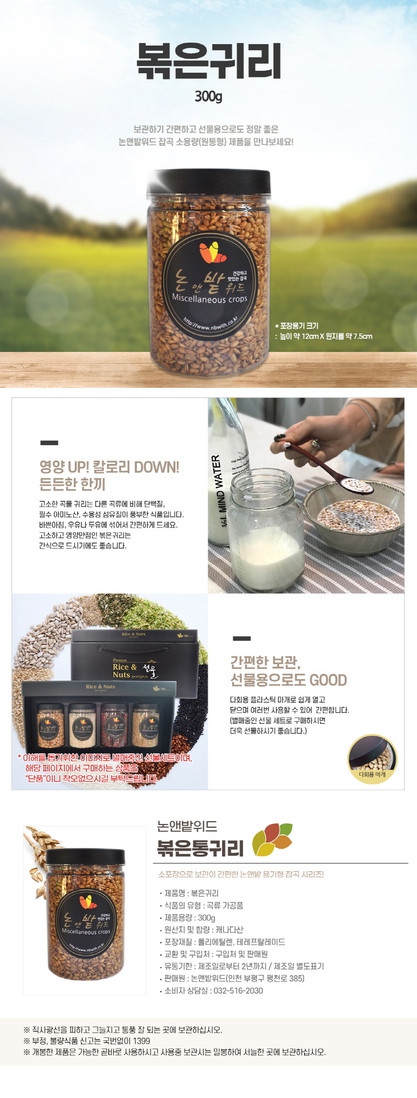 | 생산자 및 소재지/수입자 | 논앤밭위드/ 인천시 부평구 평천로 385 |