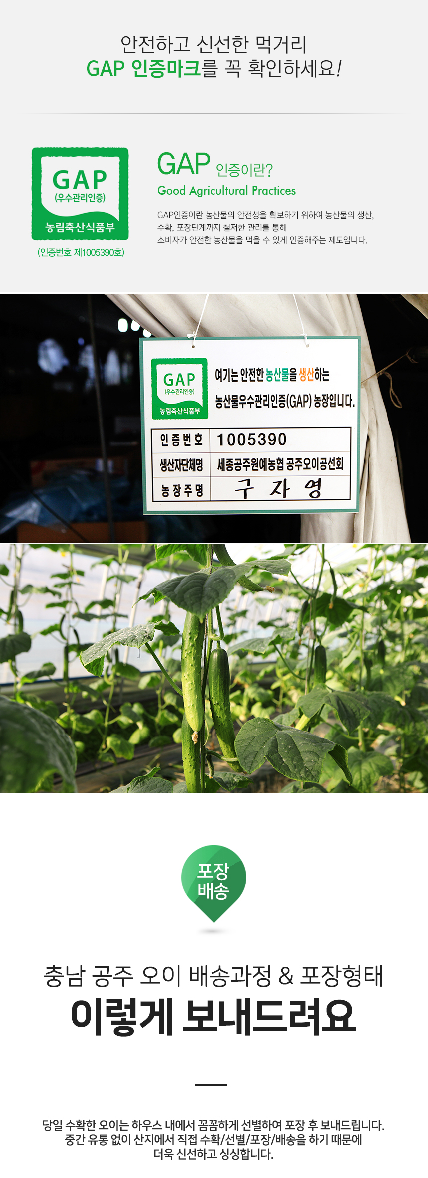 | 품목 또는 명칭 | GAP인증 충남공주 백다다기 오이 특품 2kg 9-10입 |