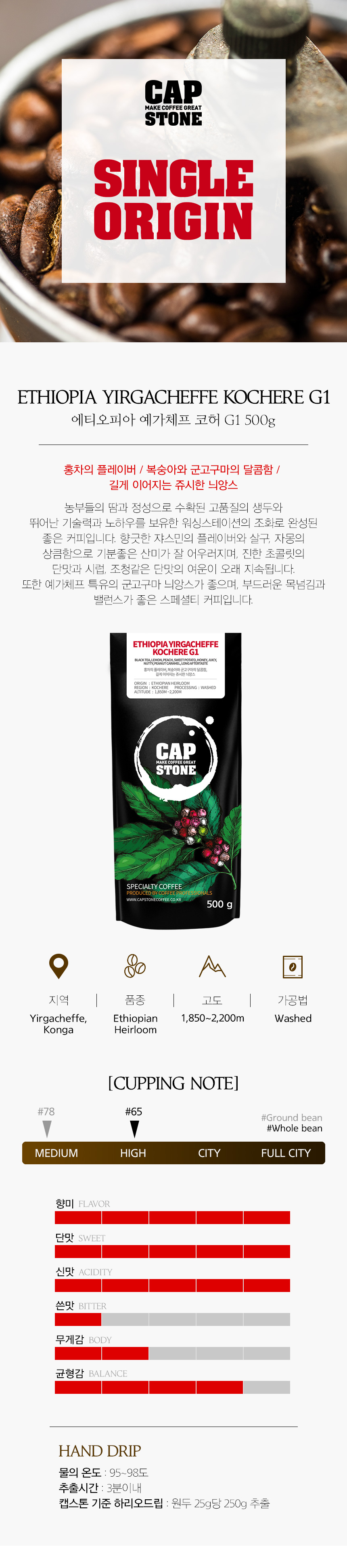 | 원재료 및 함량 | ETHIOPIA YIRGACHEFFE KOCHERE G1(100%) |