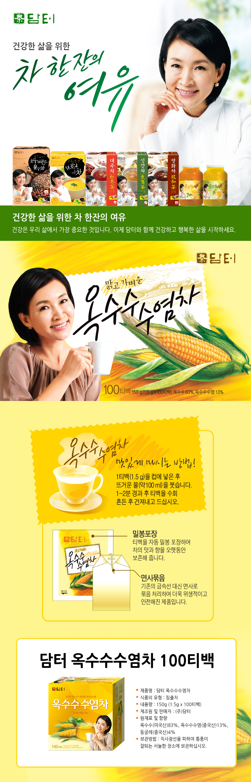 | 원재료 및 함량 | 옥수수(미국산)83%, 옥수수수염(중국산)13%, 둥굴레(중국산)4% |