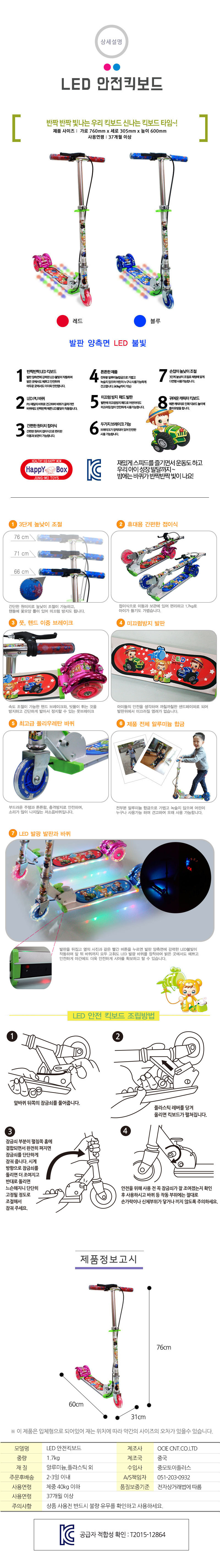 | 품명 및 모델명 | 중모토이플러스 LED 안전킥보드 |