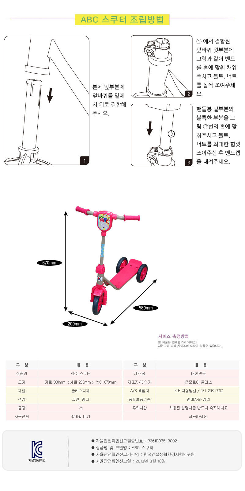 | 품명 및 모델명 | 중모토이플러스 ABC스쿠터 |