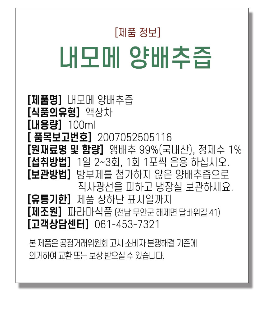 | 식품의 유형 | 상세페이지 참조 |