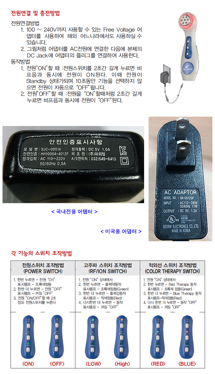 - 정격전압 : 어댑터100V~240V/50Hz~60Hz