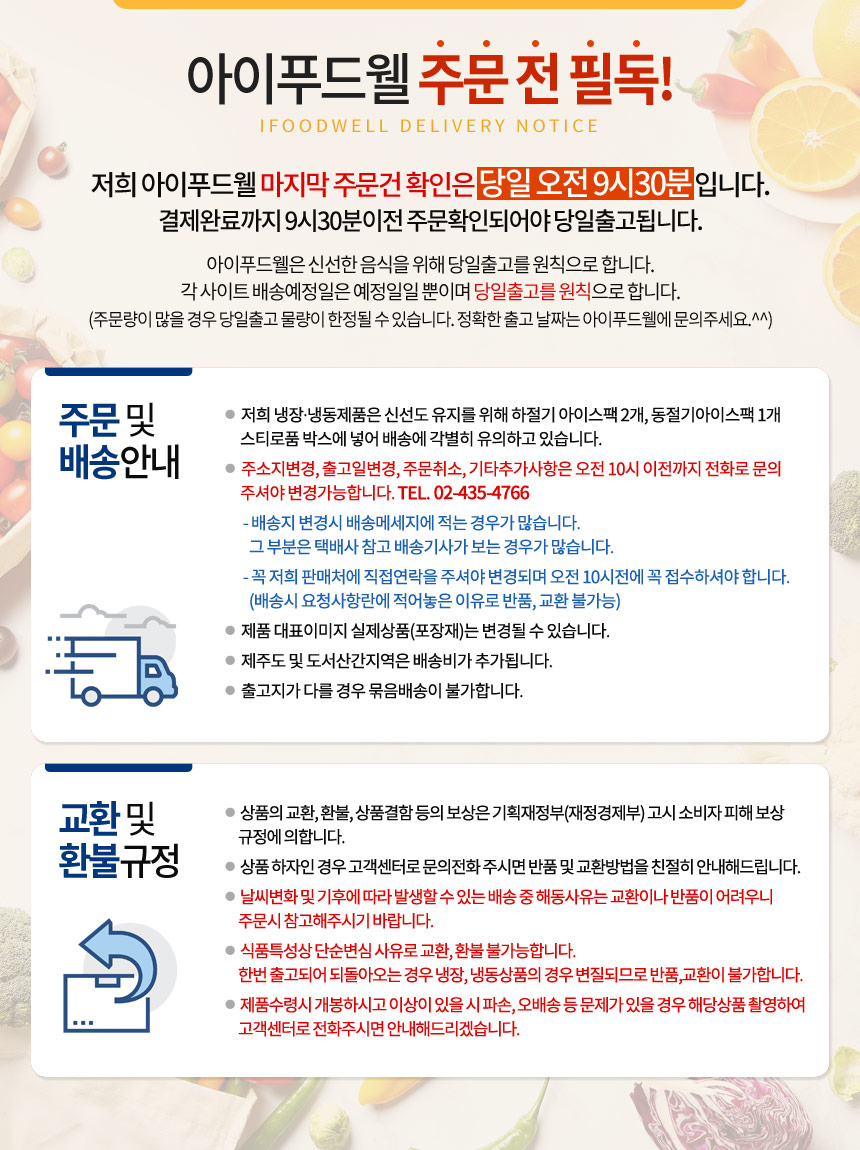| 휴일(2) | 일반상품 단독 | 오전주문 | 휴무일 | 제품수령 | |||