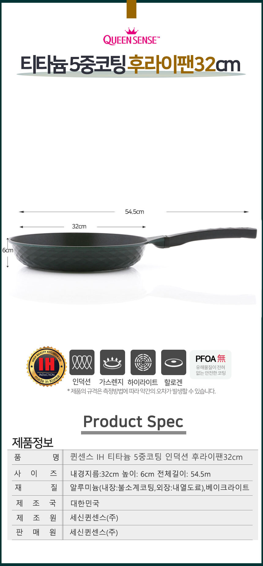 | 품명 및 모델명 | 퀸센스 5중 티타늄코팅 인덕션 후라이팬 32cm |