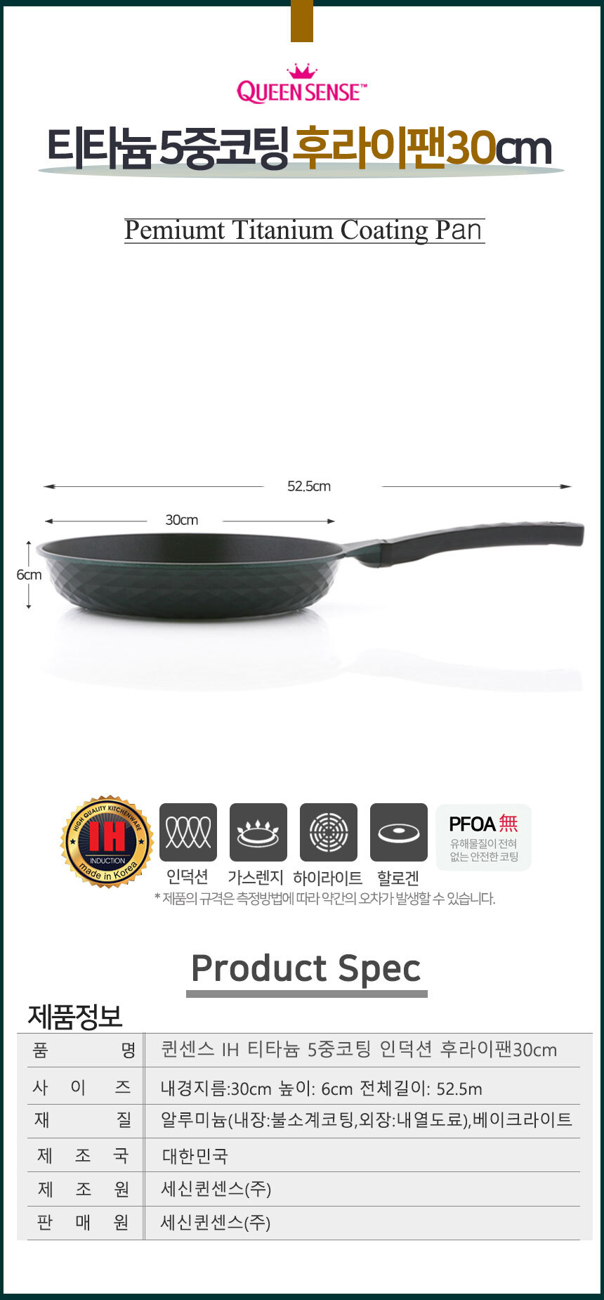 | 품명 및 모델명 | 퀸센스 5중 티타늄코팅 인덕션 후라이팬 30cm |