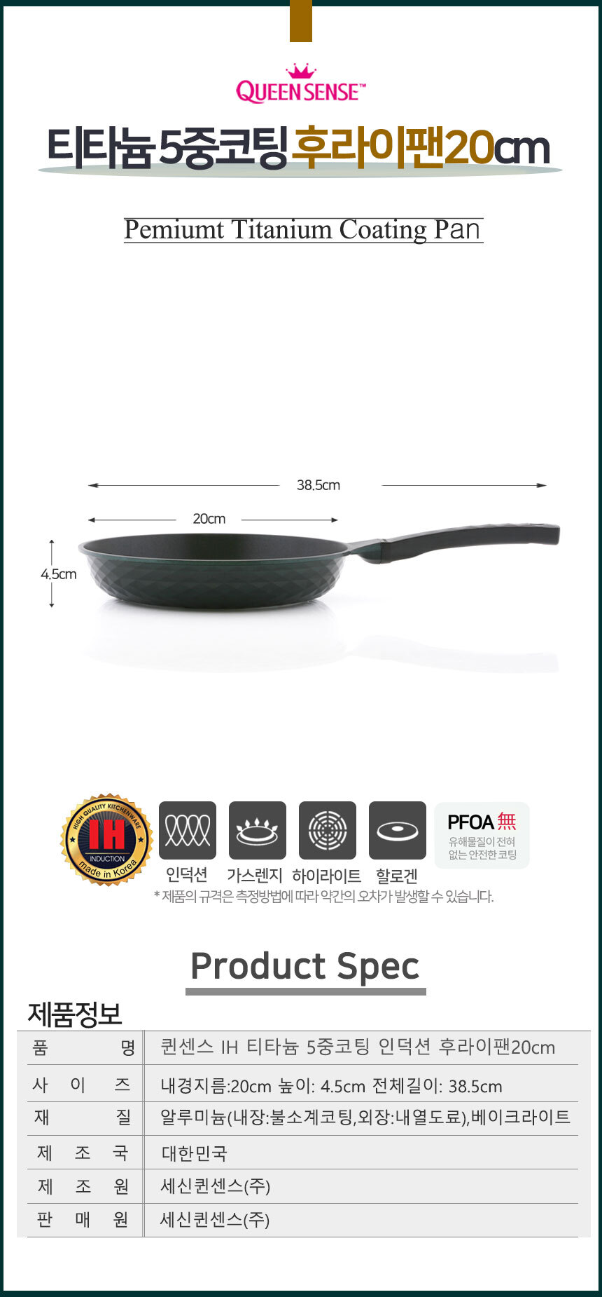 | 품명 및 모델명 | 퀸센스 5중 티타늄코팅 인덕션 후라이팬 20cm |