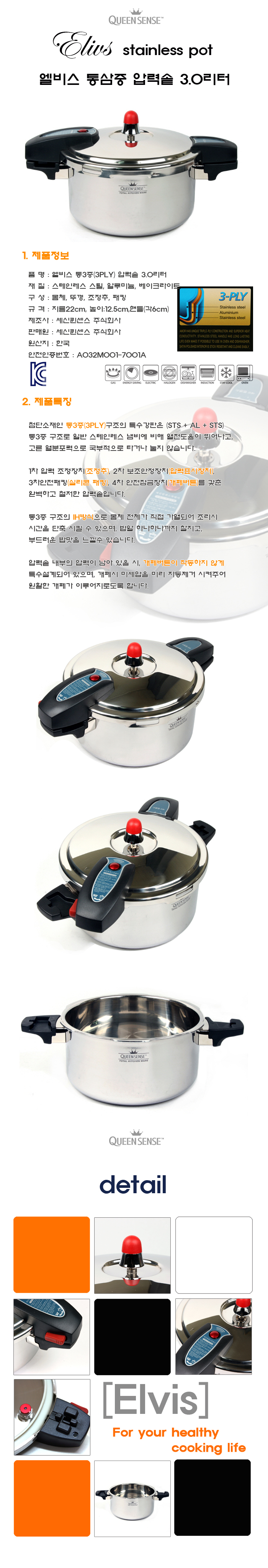 | 품명 및 모델명 | 퀸센스 통5중 압력솥 3리터 |
