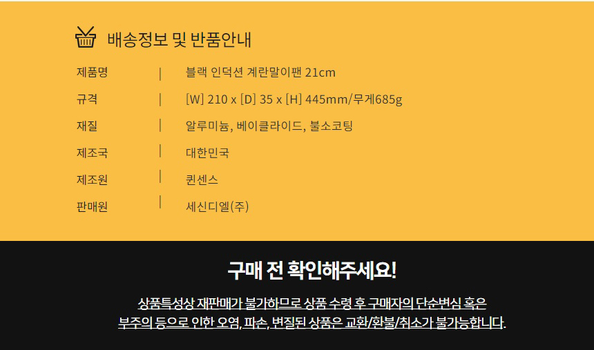 | 품명 및 모델명 | 퀸센스 블랙 인덕션 에그롤팬 |