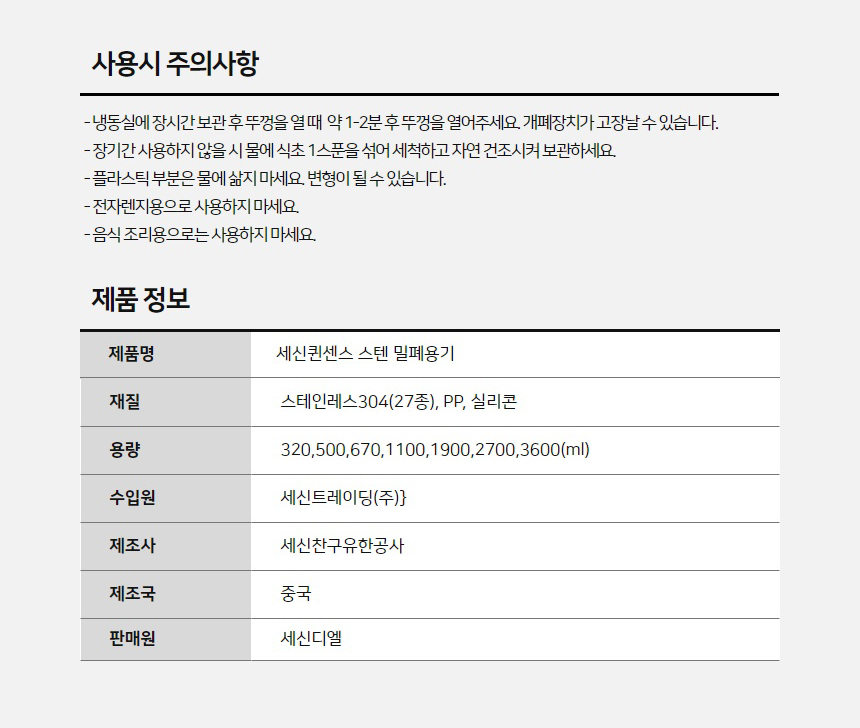 | 품명 및 모델명 | 퀸센스 스텐 밀폐용기 500ml |