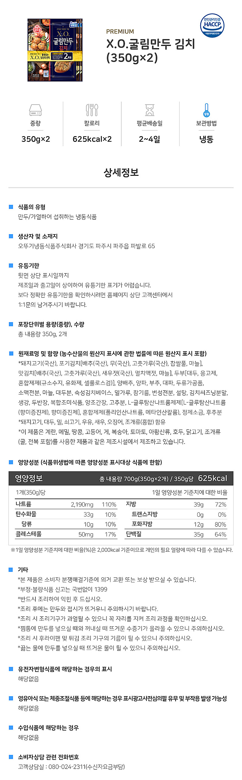 오뚜기 XO 굴림만두 김치 350g 2봉상품상세_동원몰