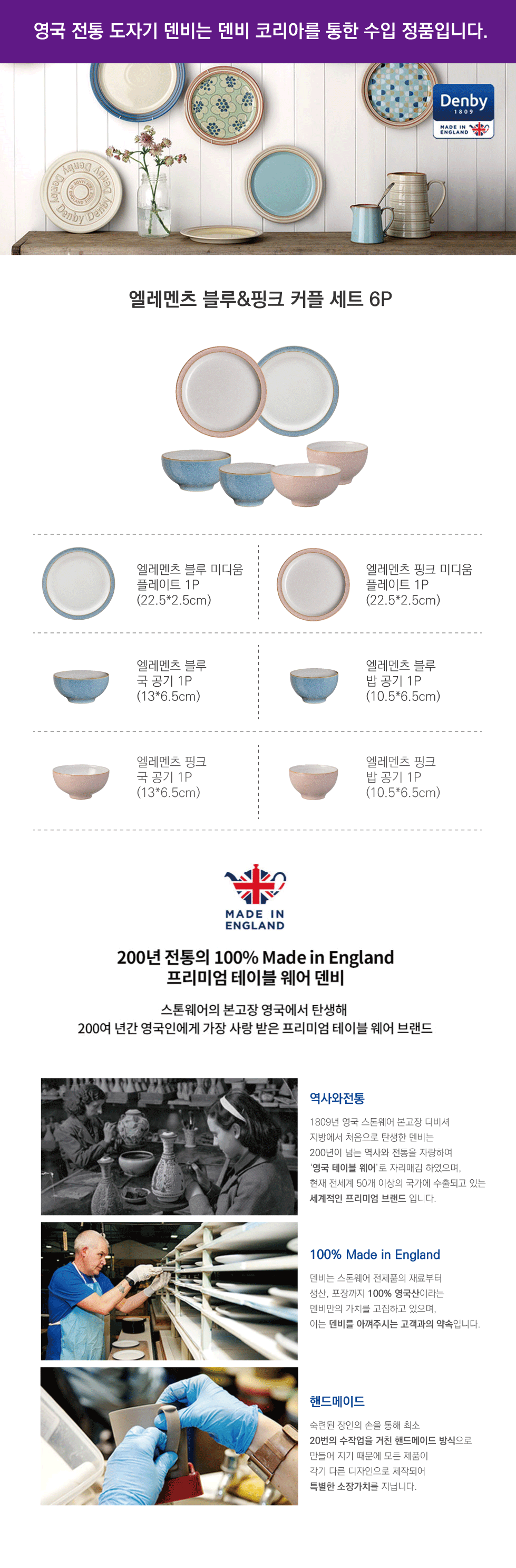 | 품명 및 모델명 | Denby 덴비 엘레멘츠 블루&핑크 커플 세트 6P |