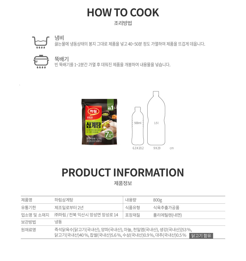 | 생산자 및 소재지/수입자 | ㈜하림/전라북도 익산시 망성면 망성로 14 (주)하림 |