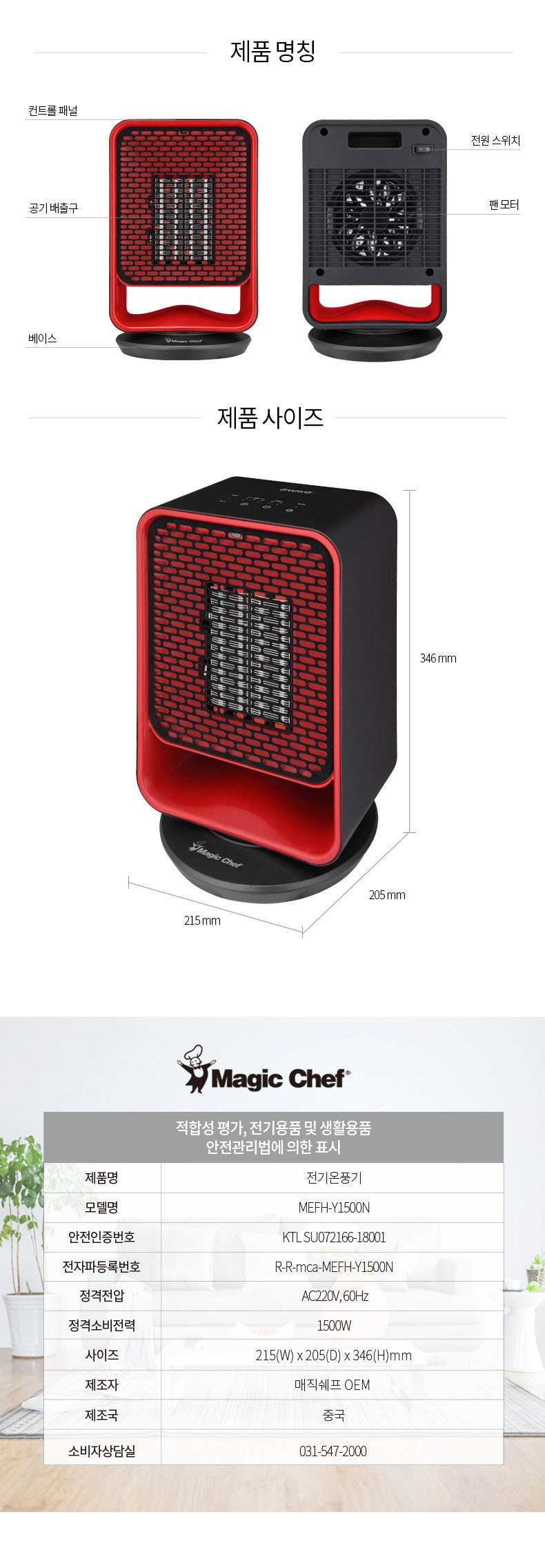 | 품명 및 모델명 | 매직쉐프 PTC 히터 사각 MEFH-Y1500N |