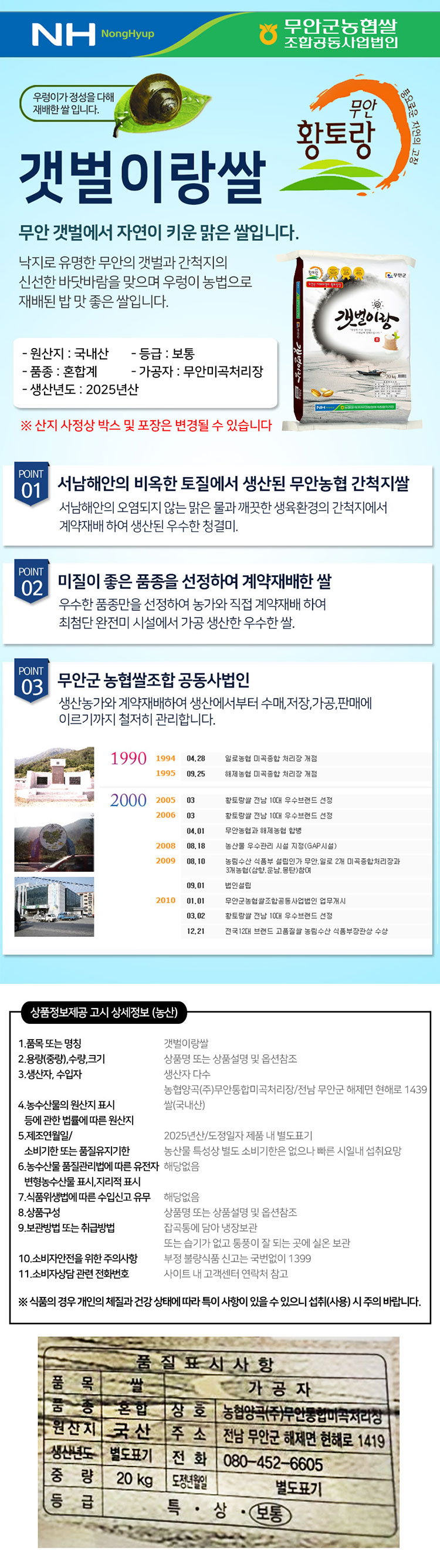 | 생산자(수입자) | 무안농협미곡처리장 |