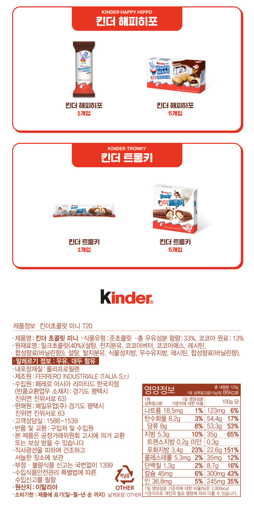 | 식품의 유형 | 페레로로쉐/인디아/페레로 아시아 리미티드 한국지점 |
