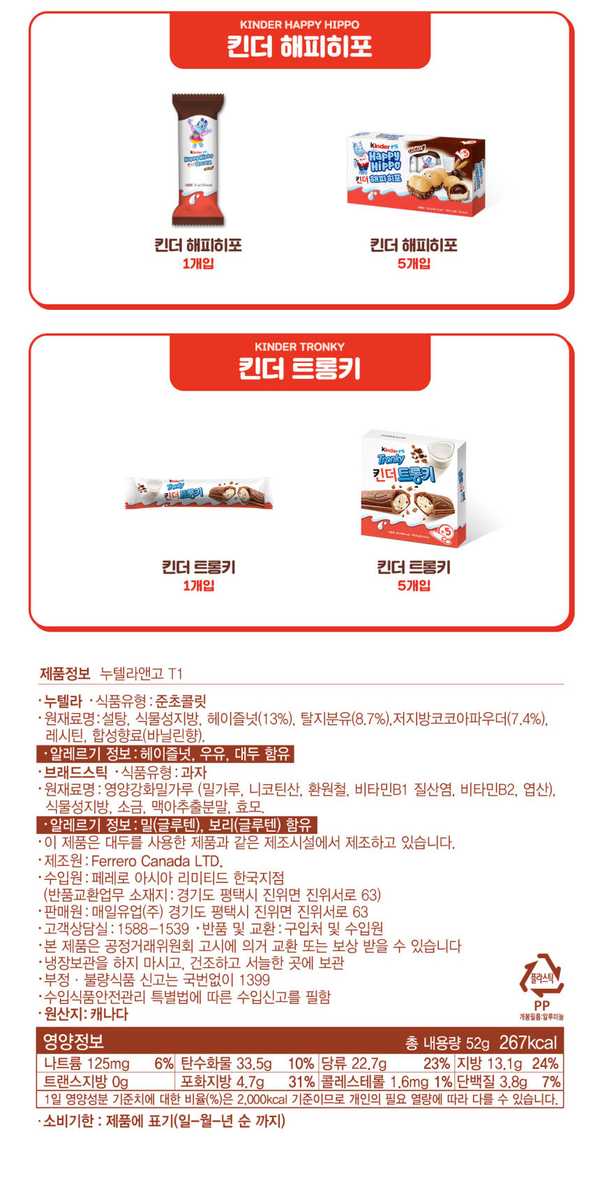 | 식품의 유형 | 페레로로쉐/폴란드/페레로 아시아 리미티드 한국지점 |
