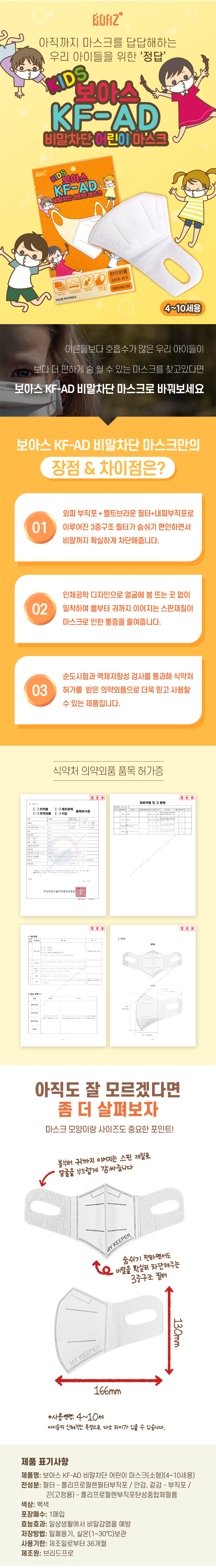 - 품 명 : 보아스 어린이 비말차단 마스크 KF-AD