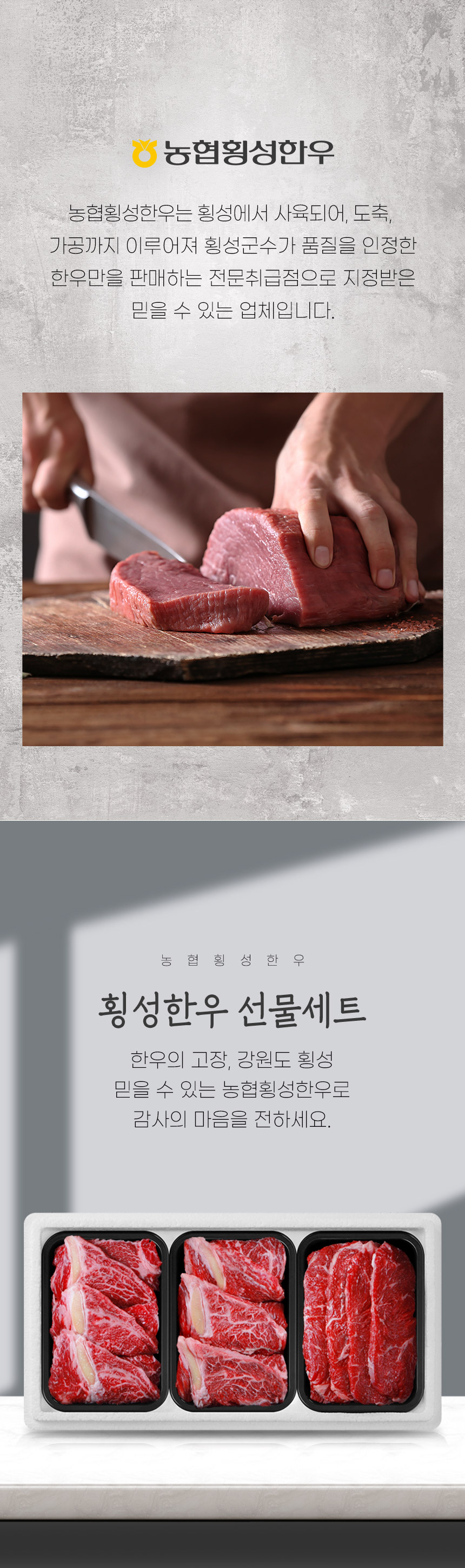 | 생산자(수입자) | 생산자: 동횡성농협 / 소재지: 강원도 횡성군 우천면 우항리 767 축산법에 따른 등급 표시 / 쇠고기 이력 추적시스템 / HACCP 인증 /이력번호 표시제품으로 수령하는 고객님들이 직접 이력번호를 확인할 수 있음 |