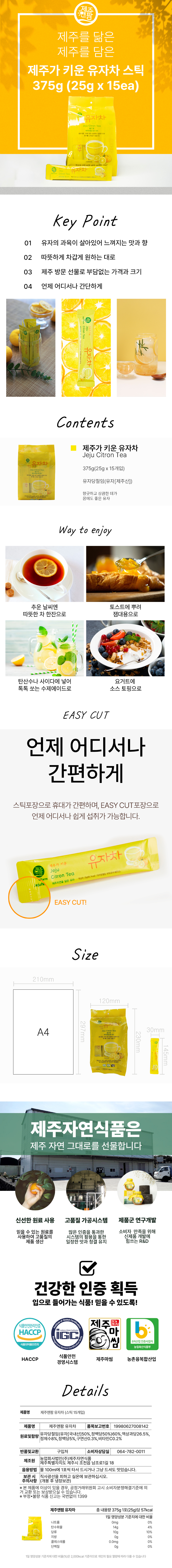 | 생산자 및 소재지/수입자 | 제주자연식품 / 제주특별자치도 제주시 조천읍 함선로 163 |
