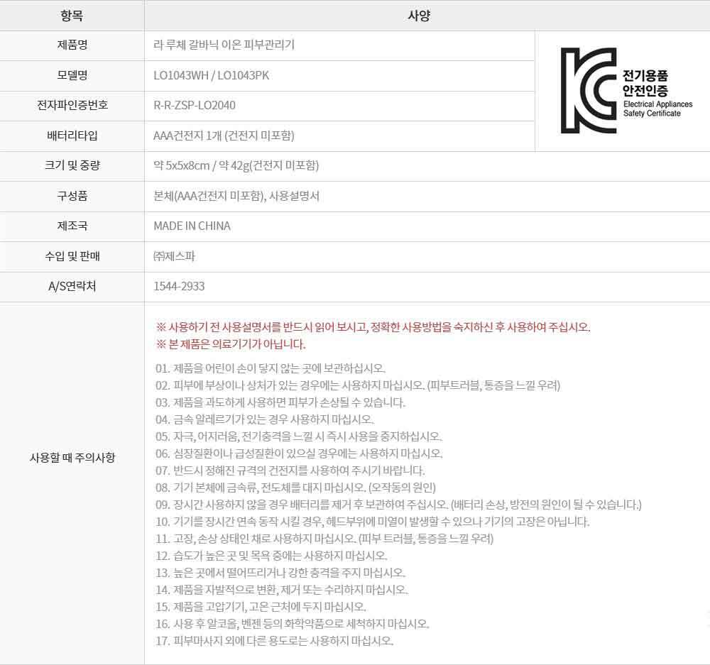 | 품명 및 모델명 | 상세 페이지 참조 |