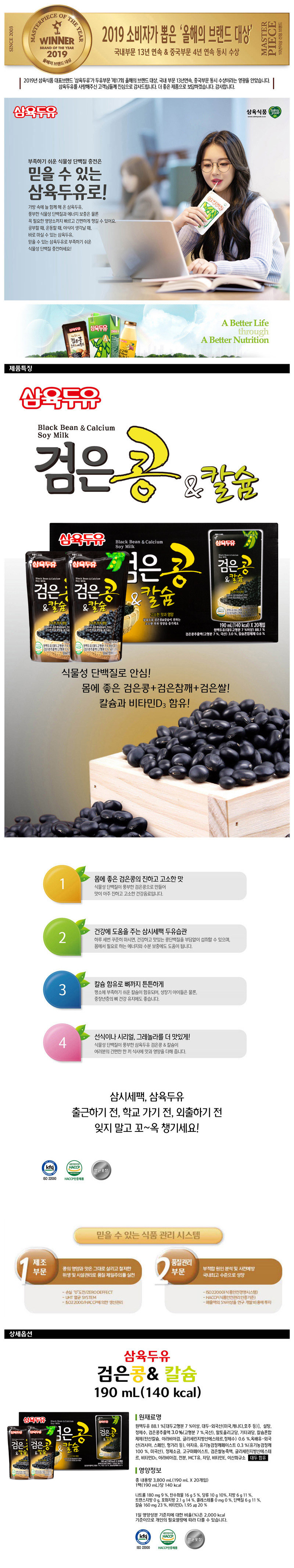 삼육 검은콩칼슘두유 파우치 190mlx20입상품상세_동원몰